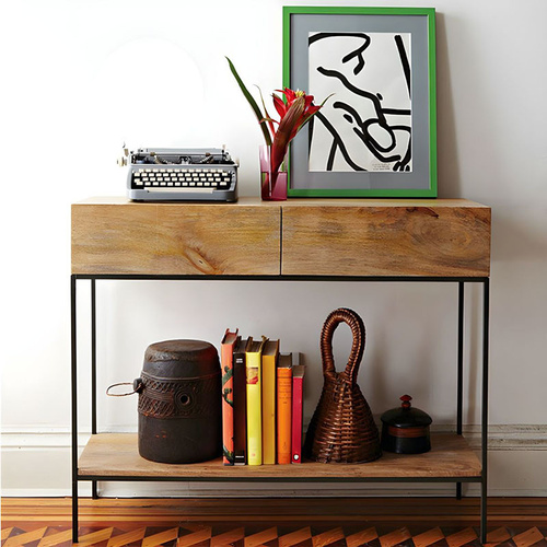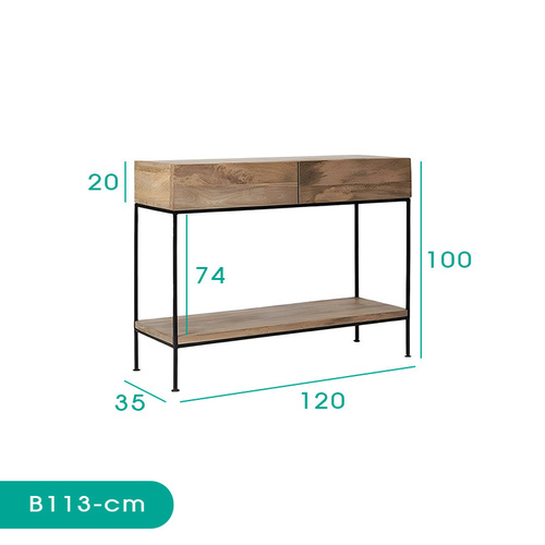 کنسول شیراز چوب مدل B113 دارای دو کشو، یک طبقه با پایههای فلزی بوده و ترکیب رنگی متنوعی دارد.